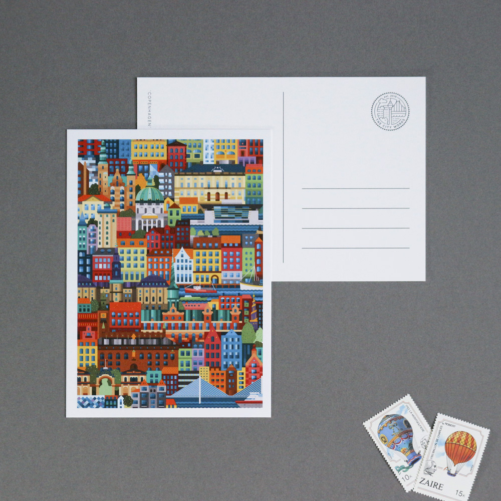 A set of 6 identical postcards featuring our detailed Copenhagen drawing. Includes the Amalienborg, Copenhagen City Hall, Nyhavn, and Tivoli Gardens.