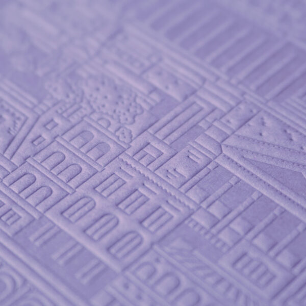 The cover is hand-pressed in our studio in Vienna. We use a traditional technique, that sandwiches the design into the paper. This leaves a lasting impression on the cover. And hopefully on you too! The spine of the book is also embossed with the name of the city, with our logo on the reverse.